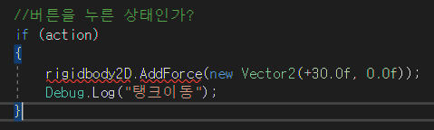 rigidbody2D.AddForce(new Vector2(+30.0f, 0.0f));