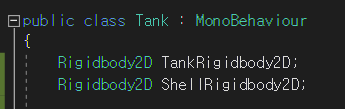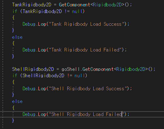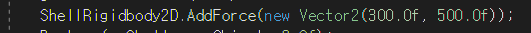 goShell 오브젝트의 경우 위에서 자식을 검색하였기 때문에 goShell 오브젝트가 가진 RigidBody2D 컴포넌트를 참조할수 있습니다.