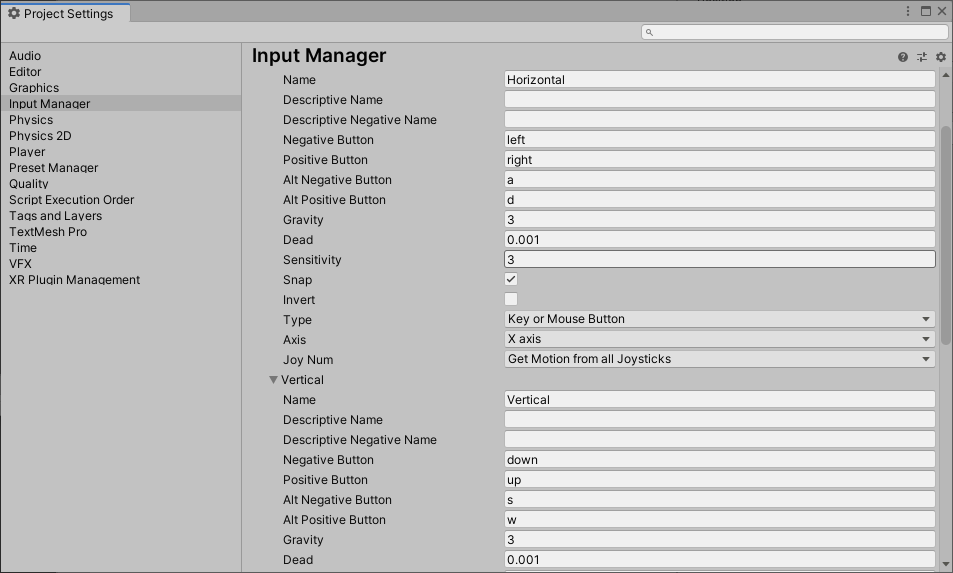 우리가 추가 조작 없이 Horizontal, Vertical 을 입력했을때 해당 키가 작동하는 이유이다.