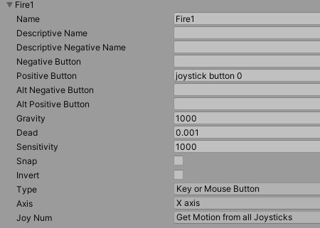 이외에도 마우스 버튼을 이용하여 Fire1, Fire2, Fire3 등의 매핑이 되어있다.